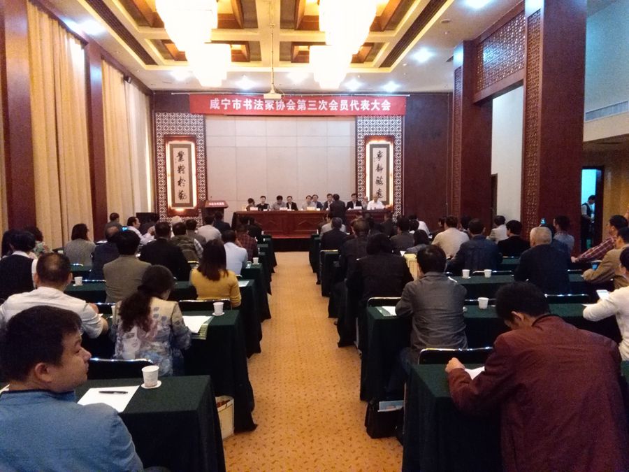 515日上午,在潜山脚下温泉谷大酒店召开了咸宁市书法家协会第三次会员代表大会,参加会议的有市文联主席柯于明,市文联副主席李专、丁敬文、王梅以及来自咸宁市各县、市、区文联的领导和咸宁市书法家协会会员共计120余人。会议由市文联副主席丁敬文主持。会议听取了二届主席团的工作报告,审议并通过了咸宁市书法家协会修改后的《章程》,选举了新一届咸宁市书法家协会理事会、主席团成员。安博(中国)卢方祥老师当选为新一届书法家协会主席,同时安博(中国)陈晓伟、付来、杨大明三位老师当选为书法家协会理事。会上,卢方祥主席代表新一届书法家主席团成员发表了就职演说。最后市文联主席柯于明作了讲话。(陈晓伟)