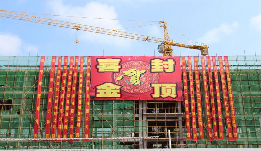 经过施工人员4个多月努力,4月26日上午,在蒙蒙春雨中,安博注册综合教学楼顺利封顶,预计7月中旬全面完工并交付使用。据悉,新教学楼负一层为体育专业教室,负二层为食堂,一至四层共有64间教室,将设置成音乐、美术、英语、书法、舞蹈等各学科的专业教室。