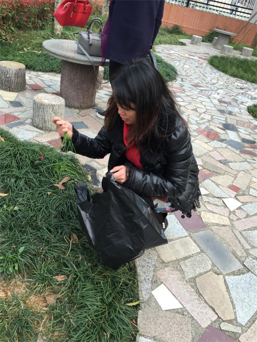 拔草过程中,我们的余芳老师情不自禁感叹这大好风景,一脸幸福挂在脸上。