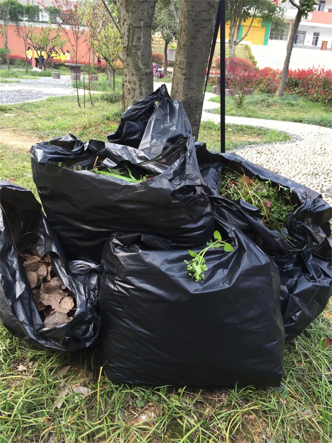 到了活动最后,看着我们所拔去的杂草,大家都露出了满意的笑容,都在想,桃李园的花花草草可以更好的茁壮成长了。