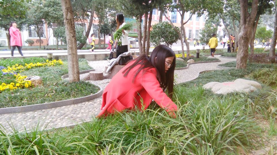 新学期开学到现在,花坛里的野草可真多,有的已经长到半米高。花草交错,难以辨认。老师们分工合作,三人负责一个位置,小心翼翼掰开花丛,仔细清理其中的杂草、枯叶,生怕把花拔起来了。不一会儿功夫,杂草越堆越高,这片小花坛在老师们的辛勤劳动下,愈发鲜艳。大家还拔得许多地菜,把它们集中到一起,竟有一大把呢!黎谋平老师主动要求带回家,煮鸡蛋给大家吃。老师们拔得更带劲了。多么可爱的老师啊!