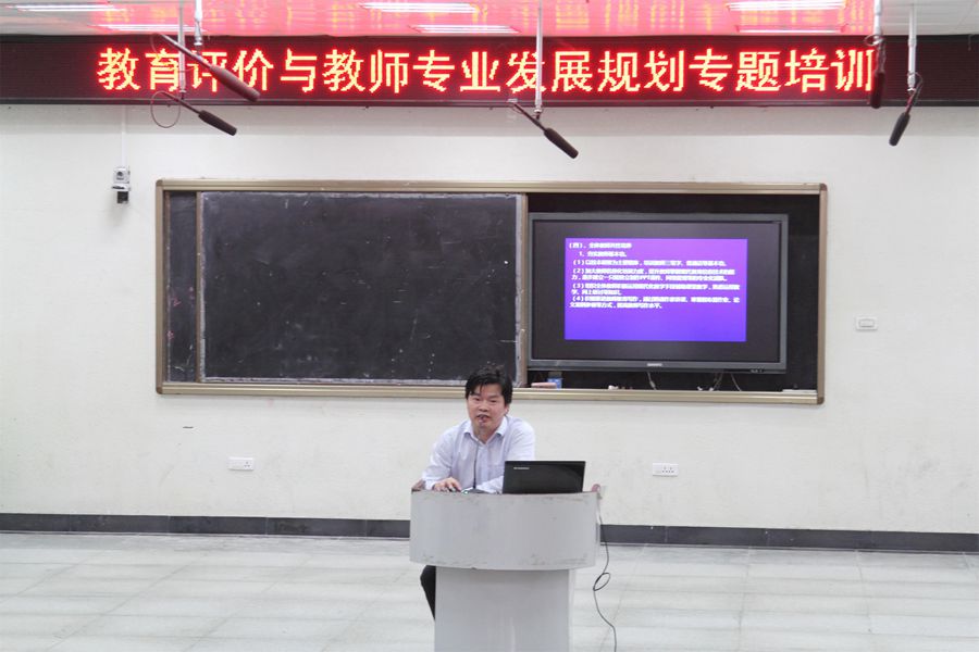 教师是一所学校发展的引擎,教师专业发展水平是学校的核心竞争力。为进一步提高教师专业化发展水平,5月23日下午,在安博注册会议室,举行了一场以“教师评价与教师专业发展规划”为内容的专题培训会,会前,学校校委会就教师专业发展规划进行了专题研究,达成了共识。培训会由学校分管领导刘安平同志主讲,学校全体教师和行政人员参加了这次会议。
