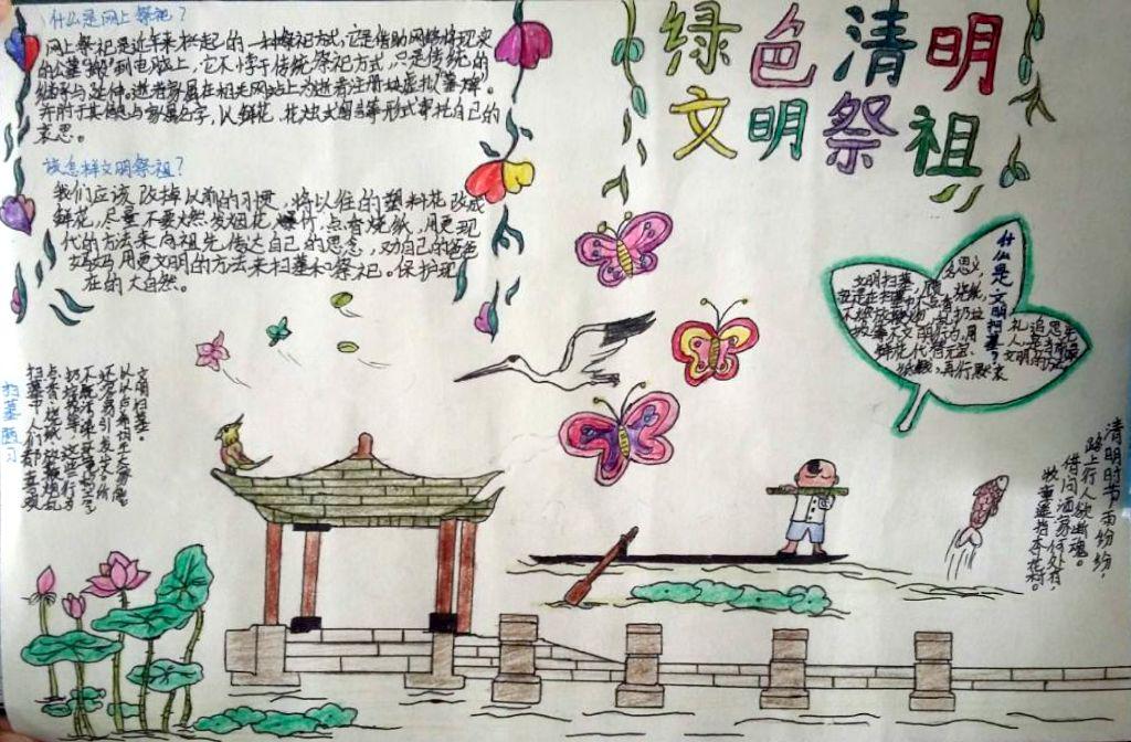 清明节祭扫完后,很多学生以手抄报和文章的形式表达了他们清明节的绿色文明祭扫活动。(苏海波)