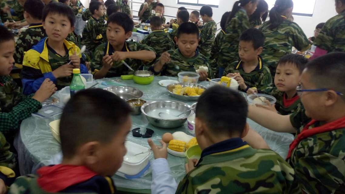 在这三天里,没有父母和老师在身边,考验的是孩子们的自理能力。洗漱、整理内务、吃饭全由教官指导后,自己完成。孩子们克服困难,团结协作,圆满的完成了各项任务。