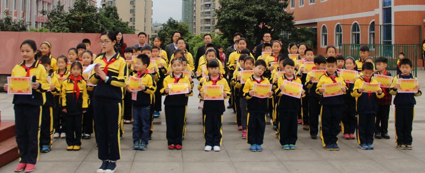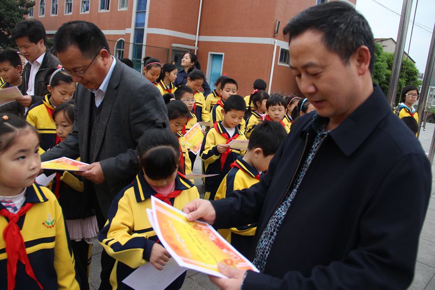 2015年4月20日,安博(中国)在升旗仪式后对学校感恩互助的同学进行颁奖