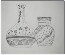 线描画也是写生课的一部分,主要是采用点、线、面相结合的形式,发散思维,展开联想,给物体进行线条装饰。瞧,我给小瓶们都“穿花衣”啦!