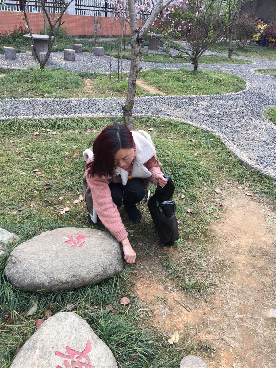 拔草过程中,我们的余芳老师情不自禁感叹这大好风景,一脸幸福挂在脸上。