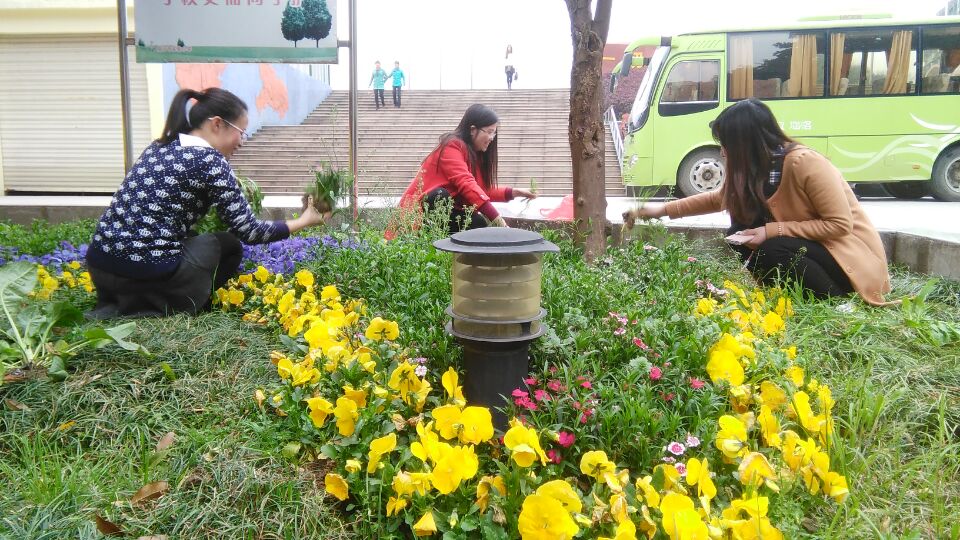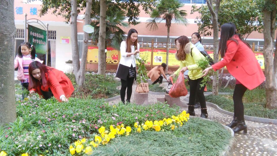 新学期开学到现在,花坛里的野草可真多,有的已经长到半米高。花草交错,难以辨认。老师们分工合作,三人负责一个位置,小心翼翼掰开花丛,仔细清理其中的杂草、枯叶,生怕把花拔起来了。不一会儿功夫,杂草越堆越高,这片小花坛在老师们的辛勤劳动下,愈发鲜艳。大家还拔得许多地菜,把它们集中到一起,竟有一大把呢!黎谋平老师主动要求带回家,煮鸡蛋给大家吃。老师们拔得更带劲了。多么可爱的老师啊!