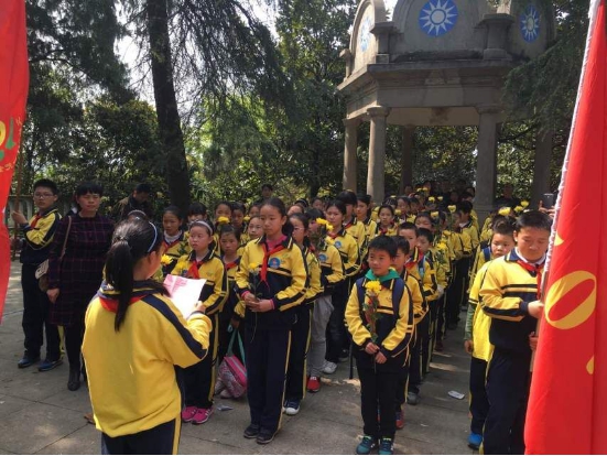 4月1日上午9点,507中队全体师生怀着虔诚和崇敬的心情,迈着整齐的步伐来到汀泗桥战役阵亡将士纪念墓园深切哀悼革命先烈,看着石碑上“革命烈士永垂不朽”字样,同学们以默哀一分钟的方式表达了对烈士们的缅怀,并向烈士们敬献了花圈。在鲜红的少先队旗下,全体学生在中队长熊一涵的领誓下重温了少先队队章。