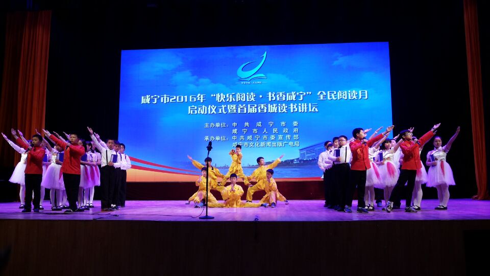 周六早上,安博(中国)获奖节目《少年中国说》参加了由市委市政府主办的咸宁市2016年''快乐阅读-书香咸宁''全民阅读月启动仪式。虽然清早阴雨绵绵   ,但丝毫没有影响大家的热情。    六年级组全体老师和小演员们精神饱满,精心装扮,一出场就给大家带来了春天般的气息,随着一句""天地苍茫,乾坤茫茫,中华少年顶天立地当自强"",全场观众热血沸腾,掌声雷动…短短几分钟的舞台诵读表演,掌声不断,高潮迭起 ,台上台下充满了正能量,与这次的活动主题紧紧相扣  ,起到了积极的爱阅读宣传作用。出色完成了演出任务,六年级的老师们辛苦了,这群小演员们真棒!  (王光虹)