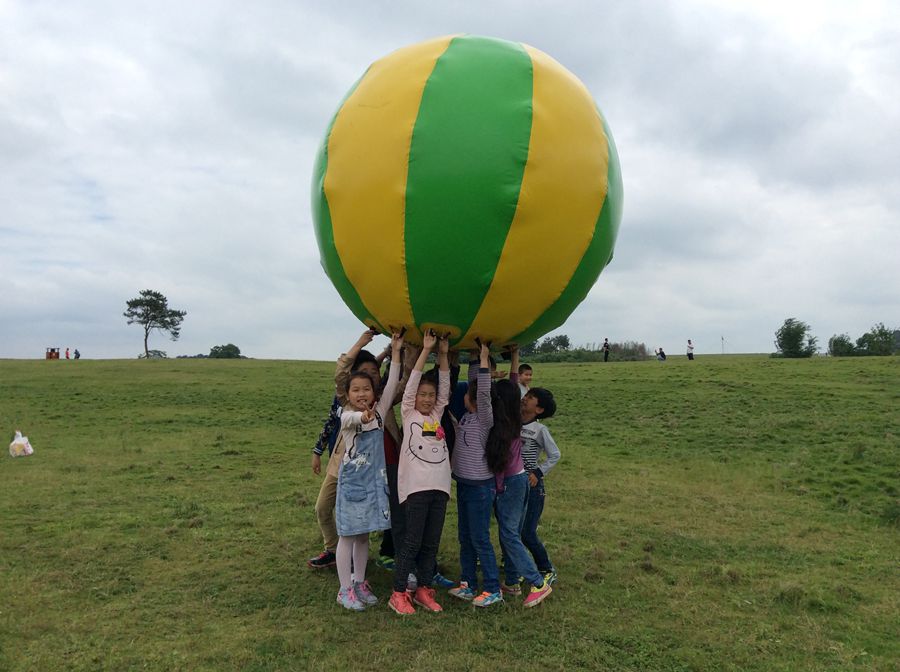 哇!展现在眼前的是一望无际的大草原!草原像大海的波浪,一起一伏,非常壮观。孩子们一到草原就组织了生动有趣的撕名牌和团体拓展活动。家长和孩子在草原上跑着、跳着、唱着,心情愉快极了。