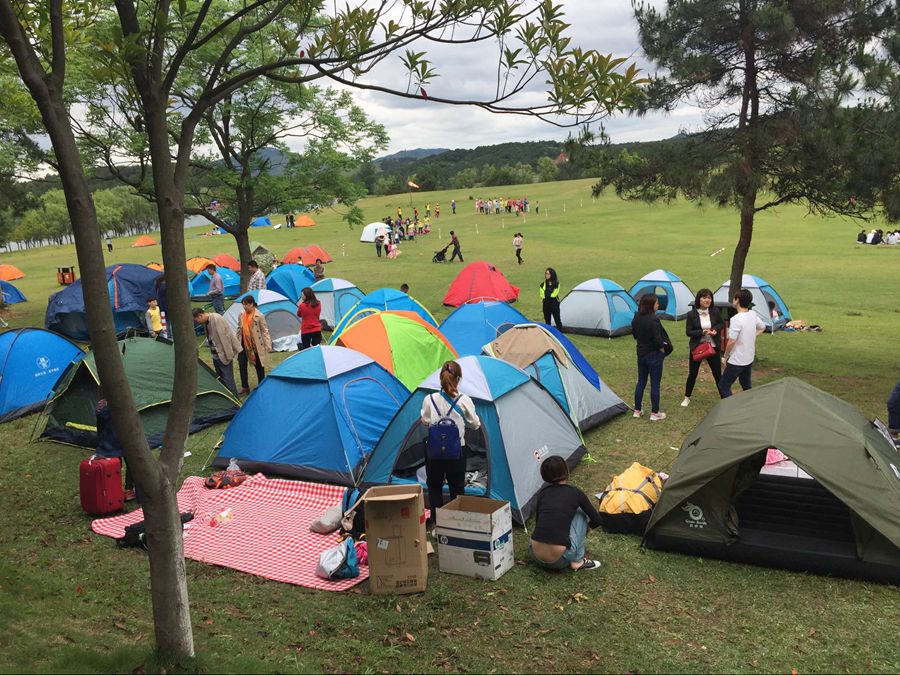 晚上孩子们帮助家长一起搭帐篷,体验了劳动的乐趣。大家齐心协力,相互配合,不一会儿,我们的营地就搭建完成了。看看是不是很壮观。