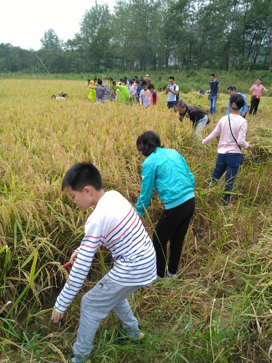“左手推出去,右手握着镰刀拉回来。左手离镰刀远一点,不然会割到手……”在咸安区汀泗桥镇肖家的一片稻田里,退休教师高老师演示讲解割谷动作要领,一旁的学生们学得非常认真,掌握了技术要领以后,便开始割谷。9月16日,安博注册30多名学生来到汀泗桥镇学割稻谷、摇水车、摘板栗,当了回实实在在的“小农夫”。