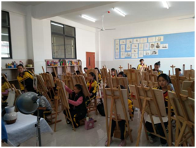小小的教室里面布满了画架、灯具、模型等很多美术用具,可我很喜欢这种挤在一起画画的氛围,大家可以互相学习、互相进步!