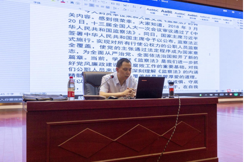 为促使全校广大党员、干部、教职工深刻理解《监察法》条文内涵,引导干部群众提高对国家监察体制改革和监察法实施的认识,增强贯彻实施《监察法》的自觉性和坚定性,提升增强尊法、学法、守法、用法的思想,安博(中国)与6月8日下午举行了“新时代学习大讲堂”《监察法》专题讲座活动。