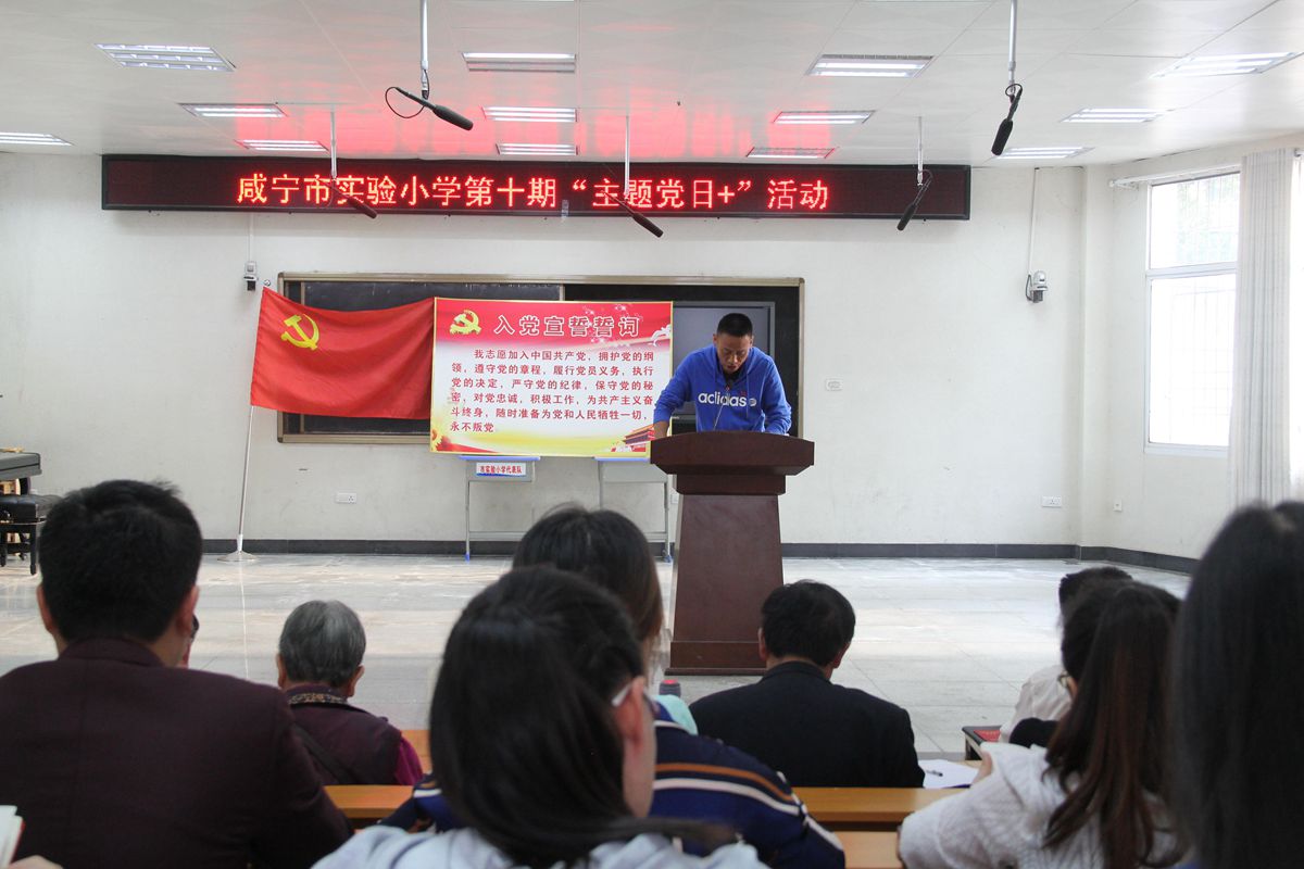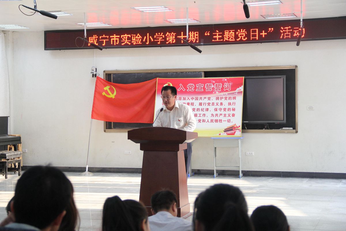校总支书记杜小清同志宣讲了包括“高层声音”、“党务动态”、“时政要闻”在内的学习要点,引领大家学习当下的重要党情,并带领大家学习党章党规的基本知识,学习《关于在全市‘两学一做’学习教育和‘主题党日+’中深入开展‘党建领航·重建家园’活动的通知》(咸学组发〔2016〕9号)重要精神,领会上级要求,传达部署安排。在会上,杜小清同志还传达了中共咸宁市纪委通报的“关于5起基层违反群众纪律突出典型案件的通报”、“关于9起违反中央八项规定精神问题的通报”和省纪委《关于6起违反中央八项规定精神问题的通报》等典型案例,告诫党员同志们要引以为戒,自觉遵纪守法……