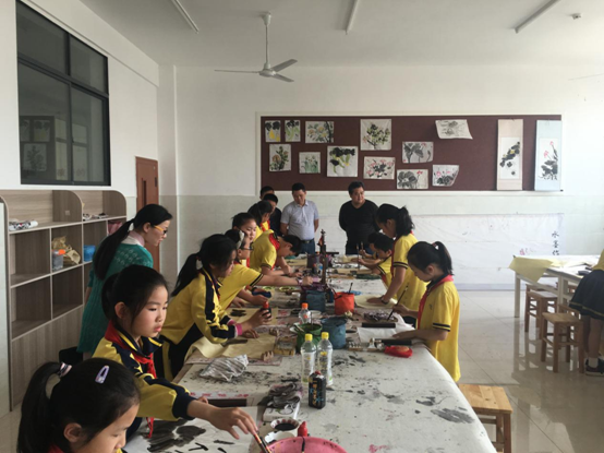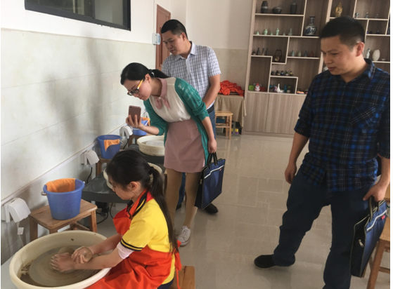 在安博(中国)党总支书记黄建军的陪同下市教育局检查组领导首先参观了安博(中国)合唱、巴乌,二胡、陶艺、油画等部分传统文化特色课程(校本课程)。
