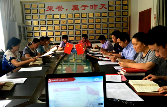 数学党支部全体党员齐诵《党章》第五章“党的基层组织”。