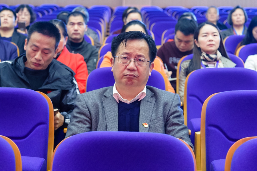 党总支书记黄建军主持收看直播的全程。他强调收看直播的会场纪律,并代表学校党总支表达了期待党的十九大顺利召开的祝福。