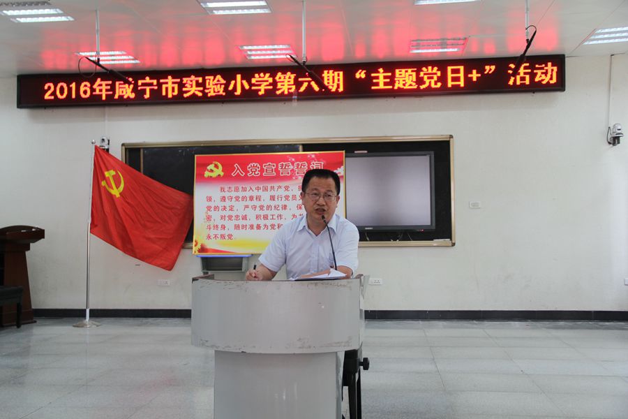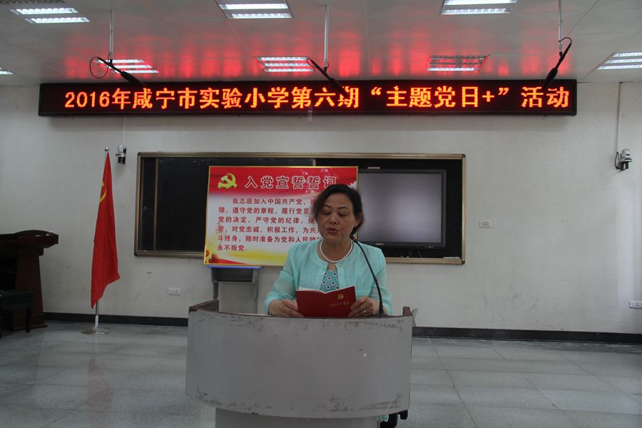 本次活动由校党总支书记杜小清同志亲自主持。与会党员同志们进到会场第一时间就按规定向自己所在党支部缴纳党费,支部收缴并现场建立统一规范的党费缴纳台账。接着,分别由校语文学科支部委员王光虹同志领诵《党章》第四章的全部内容;由总支纪检委员洪耀明同志引领学习《求是》(2016年第九期)上的重要理论专篇《基础在学 关键在做》;杜小清同志就“两学一做”宣讲《关于以“主题党日+”为载体在市实验小学党员中开展“学党章党规、学系列讲话,做合格党员”学习教育的实施方案》的有关内容……