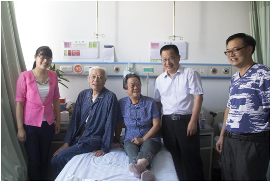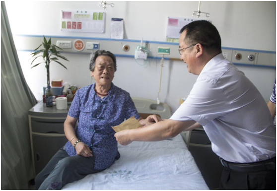 随后安博(中国)慰问代表团前往市中心医院,探望正在住院的退休支部老党员刘国英同志,向她送去问候与慰问金。“祝您老晚年幸福,健康长寿!”,杜小清同志了解了老党员的生活、身体情况,把组织的关怀送到她的心中,并嘱咐老人保重身体。刘国英同志深情畅谈道,“在学校党总支的关心关怀下,我感觉很幸福”。