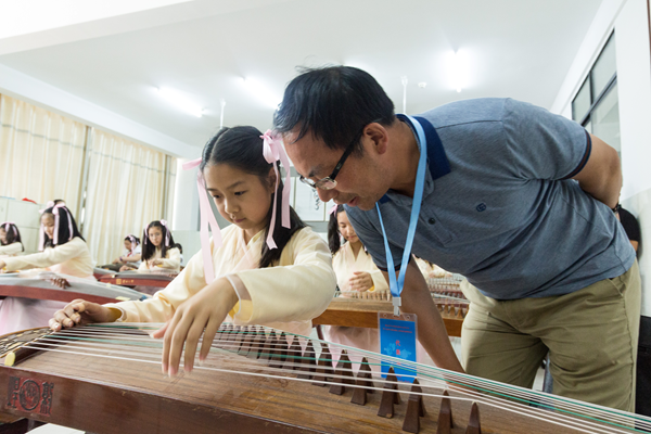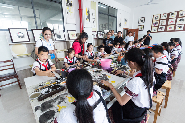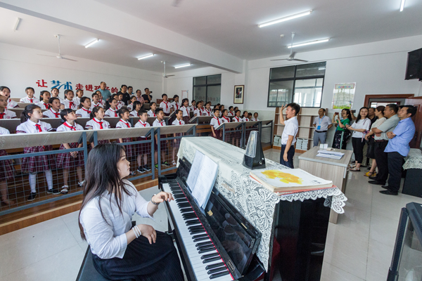 参观的校长们在一个一个的教室前驻足拍照,认真聆听孩子们的器乐表演,仔细欣赏孩子们的画作与陶艺,久久不愿离开。