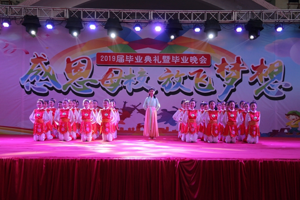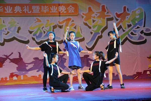 第三篇章“放飞梦想”,《诗经.小雅.鹿鸣》诵读表演,小演员们一身汉服,意境优美,用生动激情的演绎诠释了中华经典诗文的魅力。街舞表演,快节奏的舞步伴以电音乐器,用富有张力的动作抒发澎湃的情感。家长代表发言感谢老师的无私付出、尽职尽责,感恩学校的精心培育。最后《明天会更好》音乐响起,台上小演员深情领唱,台下全体师生齐声合唱,伴着舒缓的节奏挥舞着双臂,似乎在诉说着:即使分别,我们的友谊也永不褪色,无论身处何地,始终陪伴你的是我的牵挂。在动情的歌声中毕业典礼落幕!