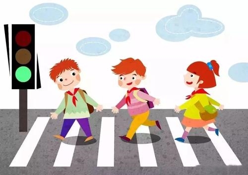 4.放学时,过马路走人行横道,注意来往车辆,遵守交通规则。